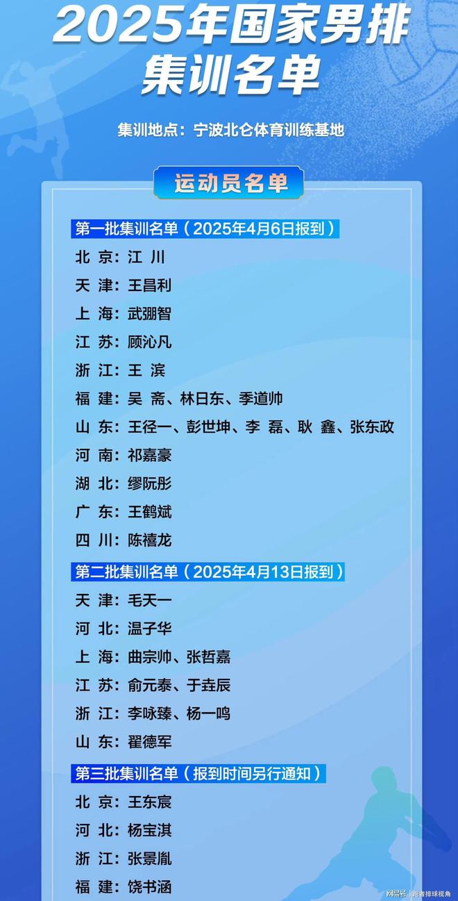 在整个超级联赛中,最忙的人必须是中国男子排球队主教练海宁,虽然有美,但全国来回看比赛,调查球员只是试图选择最好的训练名单,然后筛选约14人名单,这也凸显了海宁选择仍有很大的自主权,至少排水中心干预应该相对较少。3月31日,中国排球协会公布了中国男排最新的30人训练名单,同时确定了男排训练的时间和地点,即4月中旬在宁波北仑基地。