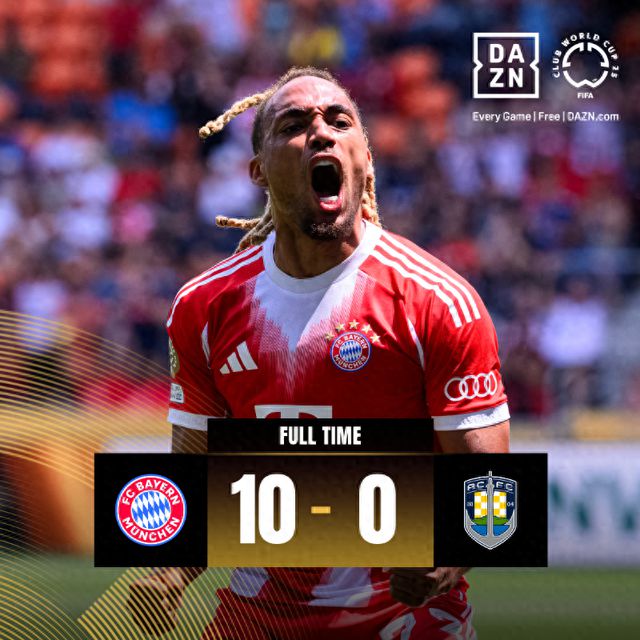 六月十六日,北京时间00:2025年世俱杯小组赛C组第一轮在TQL体育场进行比赛,拜仁慕尼黑与奥克兰城进行比赛。拜仁慕尼黑10-0战胜奥克兰城,下一轮将对阵博卡青年,奥克兰将对阵本菲卡。