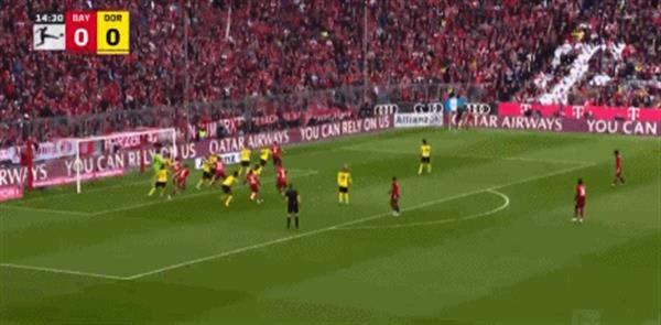 第41分钟,基米希开出左路任意球,格雷茨卡头球攻门没顶正。两分钟后,莱万带球推进到禁区前低射稍稍偏出。半场战罢,拜仁2-0领先多特。