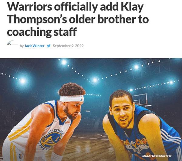 勇士人事调整:克莱哥哥进入教练组 由利文斯顿举荐
