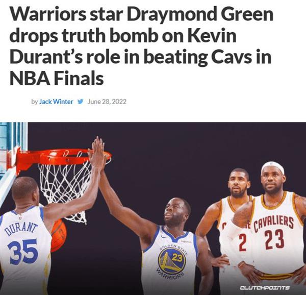 尴尬的是,尽管杜兰特2次带领勇士夺冠,还2次当选为FMVP,但人们始终对他评价不高,认为勇士是属于库里的球队,杜兰特只是搭便车蹭到总冠军的。格林尽管曾经和杜兰特闹过矛盾,但这次他还是选择了替杜兰特说几句公道话。