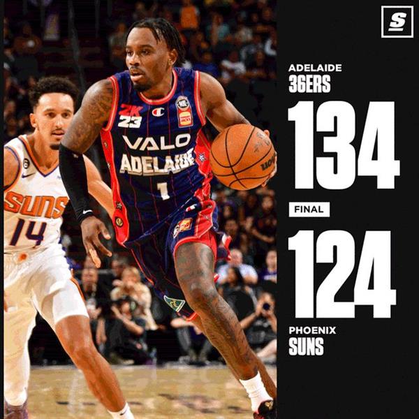 2022-23赛季NBA季前赛继续进行,菲尼克斯太阳队遭遇败仗。兰戴尔得到全场最高35分,弗兰克斯得到32分和7个篮板,他们率队在上半场取得领先后牢牢保持领跑位置,阿德莱德36人队以134-124战胜太阳队。