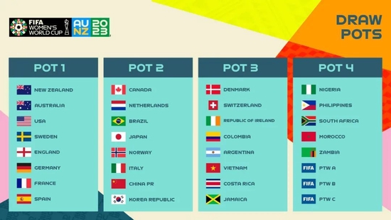 10月22日,2023年女足世界杯抽签仪式将在新西兰的奥克兰举行,19日,国际足联公布了分档结果,中国女足位列第二档。