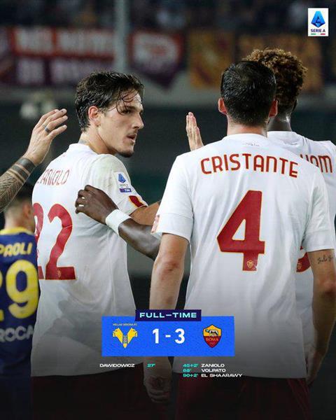 北京时间11月1日1:30,新赛季意甲联赛第12轮焦点战,罗马客场挑战维罗纳。上半场,亚伯拉罕趟过门将击中立柱,达维多维奇破门后染红。之后,亚伯拉罕射门中柱,扎尼奥洛补射扳平比分。下半场,马蒂奇头球中框,2003年出生沃尔帕托反超比分,终场前沙拉维破门。最终,罗马客场3-1逆转击败10人维罗纳。在意甲积分榜中,罗马12场比赛拿到25分,重返意甲第四位置。