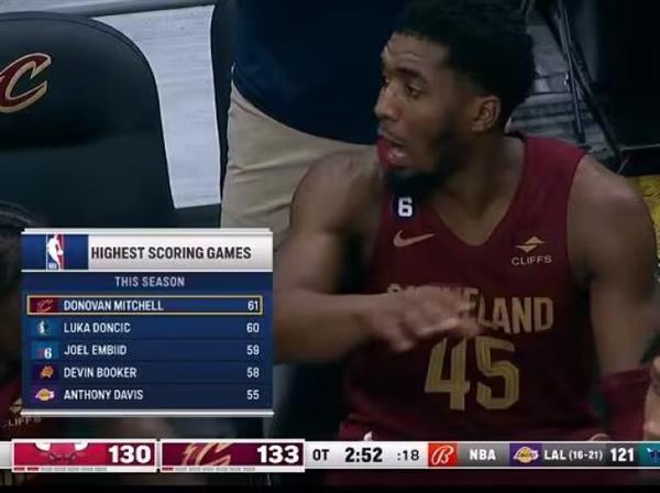 首先,米切尔创造了本赛季单场最高分的纪录,之前的纪录是东契奇60分。