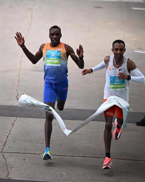 男子半程,埃塞罗那LeulGebresilase和肯尼亚的WesleyKiptoo终点前上演了比赛,前者以60分34秒夺冠,后者以1秒之差亚军,摩洛哥的Mohamed60分58秒季军。