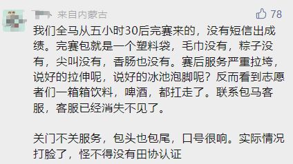 赛后包发放混乱,赛后奖牌不足,赛后服务不足,汽车摆渡不足,志愿服务态度差...