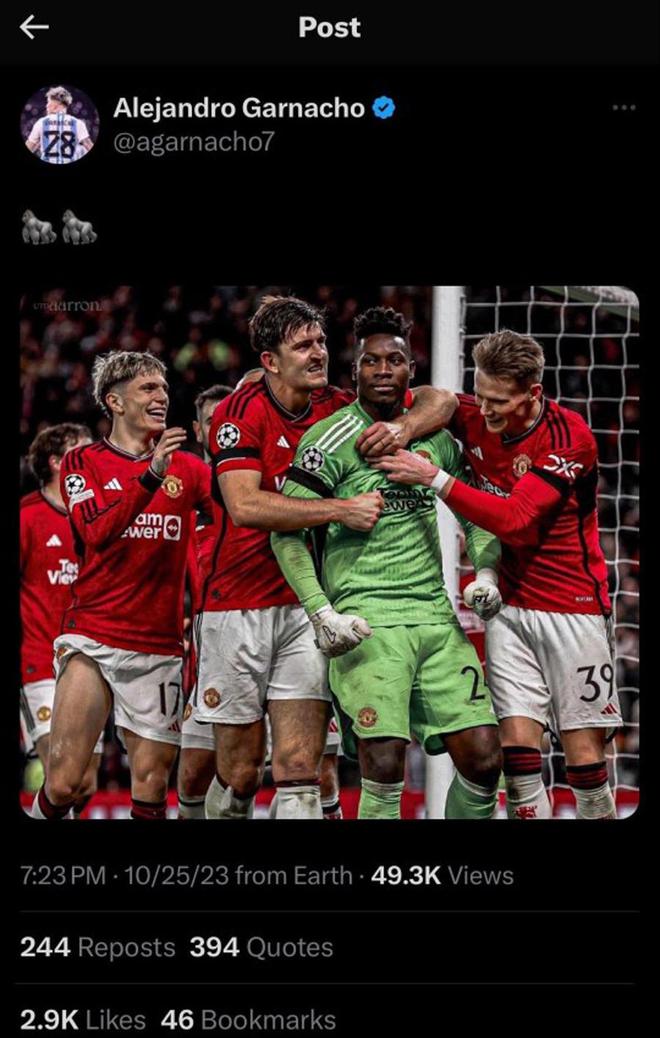 然而,与加纳乔的行为可能带来的后果相比,道德上的谴责根本不值一提。当加纳乔在社交媒体上庆祝奥纳纳扑点时,他实际上使用了两个。「大猩猩」表情符号!