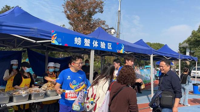 据悉,高淳马拉松也是中国第一场让玩家在终点吃螃蟹的马拉松。本次比赛深入挖掘了当地的“螃蟹文化”,为全马跑步者提供了“一公一母”的螃蟹完成比赛礼包,并在全程终点设置了蒸螃蟹品尝体验区。