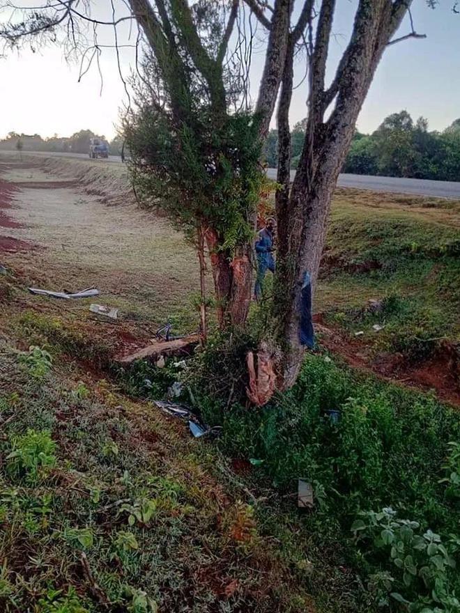 驾驶丰田Premio的基普图姆突然失控,撞树坠入深沟。