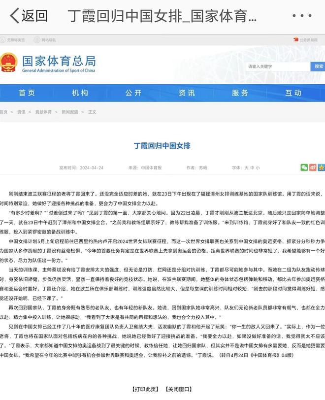 中国女排老将丁霞今年第一次出国加入波兰女排超级联赛和波利采化工俱乐部。本赛季,他和球队一起获得了两枚金牌,波兰超级杯和联赛冠军。波超夺冠后,马不停蹄地回归国家队的丁霞!努力工作的精神也得到了国家体育总局的肯定。他在官网发布文章鼓励老兵。文章来自《中国体育报》,标题为《丁霞回归中国女排》。