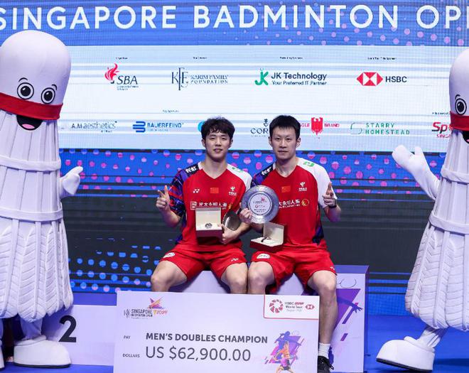 本周日,何济霆/任翔宇在新加坡公开赛决赛中以2-1击败日本组合保木卓朗/小林优吾,获得男双冠军。三场比赛分为21-16。、19-21、21-16。在超级750比赛中,他们获得了第一个冠军。