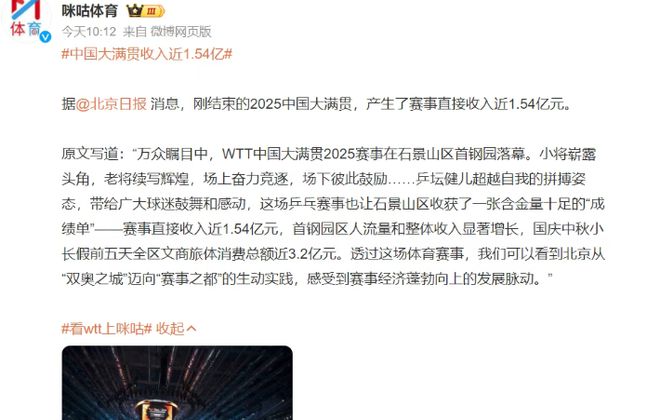 “运动员是比赛的核心,但商业回报倾向于资本。”业内人士指出,作为一家商业公司,WTT需要在利润和运动员权益之间寻求平衡。目前,乒乓球赛事正在探索“赛事+”模式,如首钢园工业遗址联动、文化旅游消费融合等。,但如何让运动员分享发展红利仍然是一个关键问题。