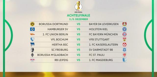 北京时间11月3日凌晨,德国足协官方公布了德国杯八分之一决赛的对阵名单,这几场比赛将于当地时间12月2日和12月3日进行。