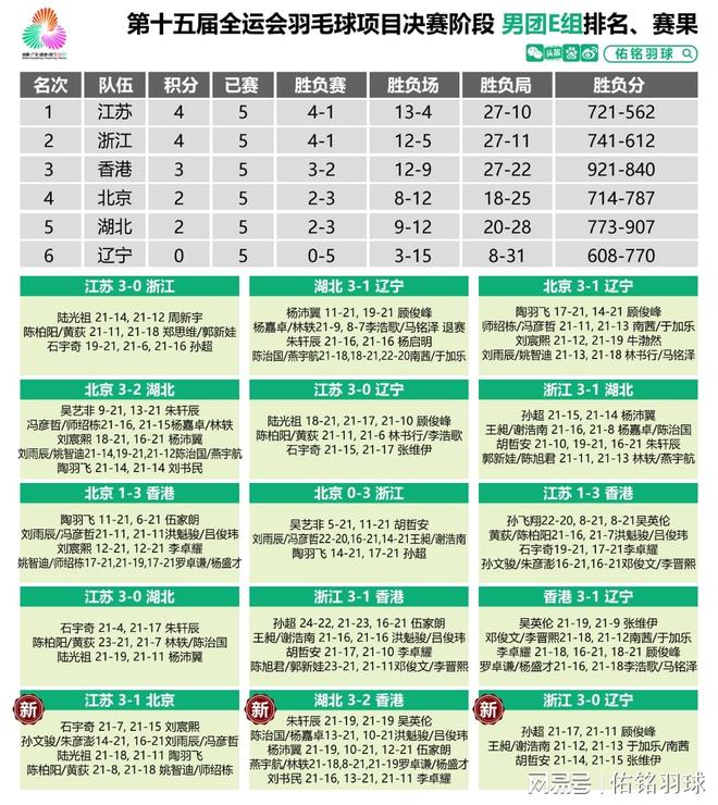 浙江和香港竞争激烈。鄂港战争第一场男单吴英伦输给朱轩辰后,港队已经提前陷入被动。直到浙江3-0击败辽宁,江苏和浙江男团才早早携手出线。然而,香港和湖北打了5场比赛。李卓耀三单出场,又掉了链子,1-2输给了刘书民,虽然输赢与大局无关。