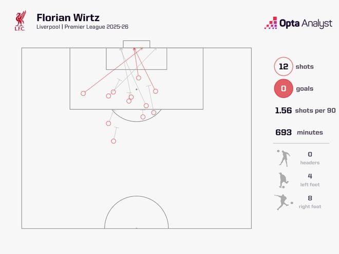 - 2025-11-12维尔茨英超射门+创造机会次数达28次,但进球、助攻均为零