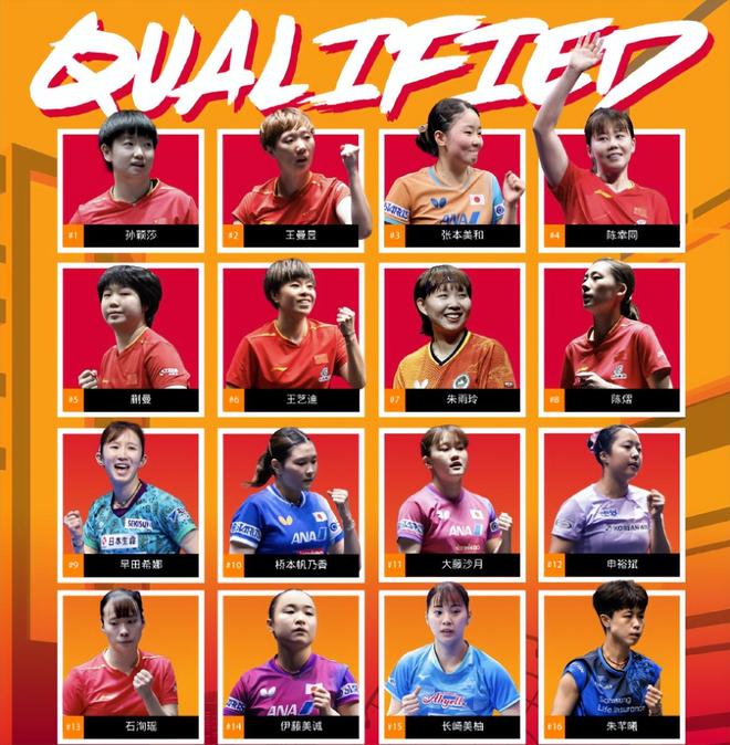 入选女子单打的选手有孙颖莎、王曼昱、陈幸同、张本美和、王艺迪、凯曼、陈熠、石头、朱雨玲、早田希娜、大藤沙月、桥本帆乃香、申裕斌、长崎美柚、伊藤美诚、朱芊曦等。16名女子单打选手的名单也全部公布。朱芊曦比两周前公布的名单更多。
