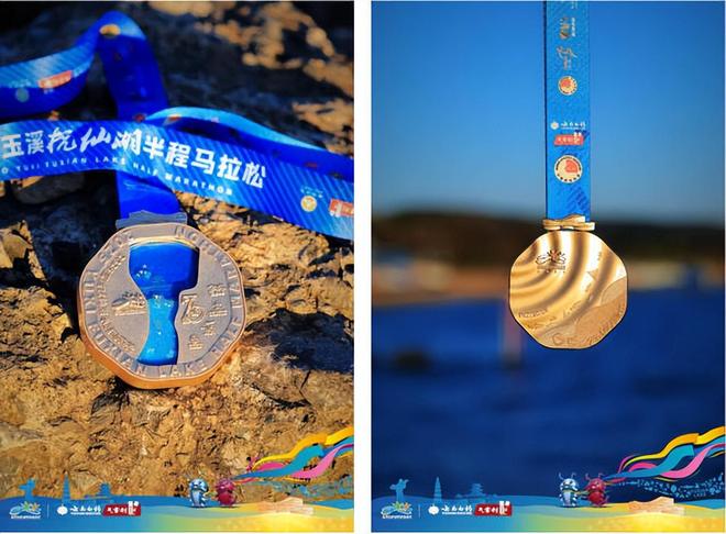 一枚奖牌,承载一路荣光,更藏着一方水土的深情。本届赛事完赛奖牌“波澜”以抚仙湖为灵魂,将湖水的灵动与奔跑的张力完美融合,以动态起伏的造型复刻湖面涟漪,暗藏水韵运动之魂,恰如跑者途中跨越疲惫的每一次坚持。奖牌正面嵌入赛事LOGO与灵动水生生物纹样,复刻湖畔生命的鲜活;背面创新采用流沙设计勾勒“湖底秘境”,搭配7周年专属标识与细腻磨砂质感,指尖触碰间,既有金属的厚重质感,又有流沙流动的温柔,既是完赛荣誉的见证,更是承载湖光记忆、赛事沉淀的文化信物。它不仅镌刻着21公里的拼搏印记,更将抚仙湖的澄澈、七年赛事的坚守与跑者的热爱凝于方寸,成为可触摸、可珍藏的时光勋章。