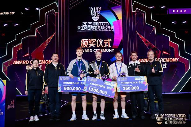 12月28日,2025年深铁TOD·天王杯国际羽毛球公开赛结束。石宇奇获得冠军,安东森获得亚军,拉尼尔和乔纳坦分别获得第三名和殿军。赛场外的精彩延续,林丹与桃田贤斗、彼得·盖德搭档鲍春来携手青年选手上演欢乐联动,石宇奇、拉尼尔等获奖选手上台返场,国羽三剑客杨洋、赵建华、熊国宝重聚。