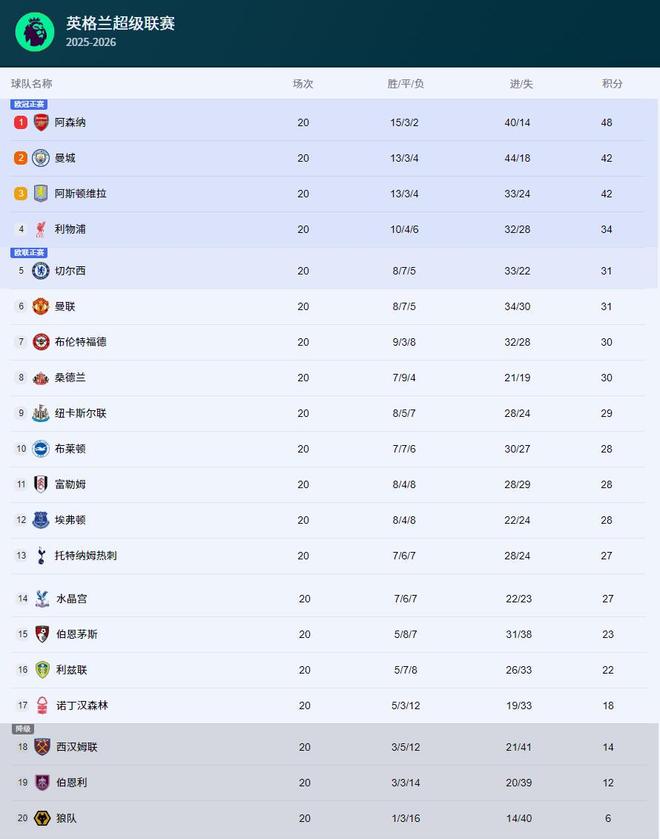 - 2026-01-05切尔西1-1曼城,曼联1-1,利物浦2-2遭绝平,英超最新积分榜出炉