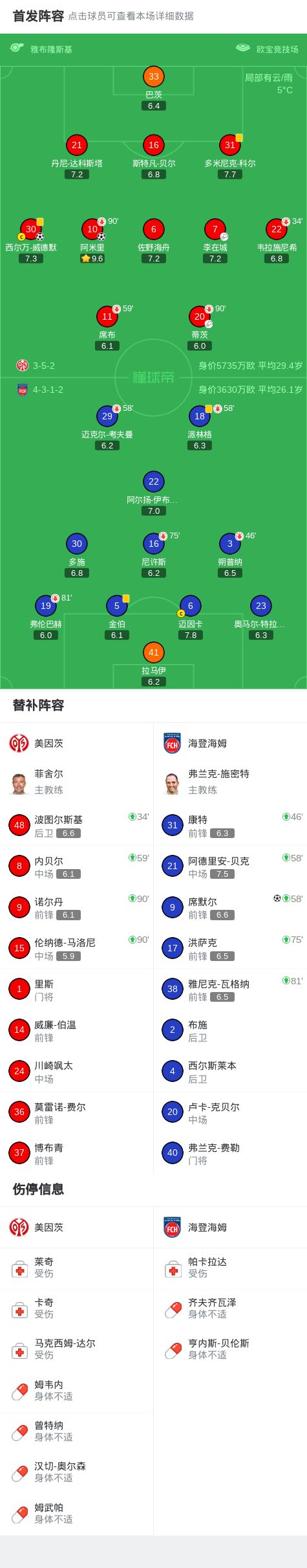 美因茨球员蒂茨在第48分钟助攻阿米里进球。