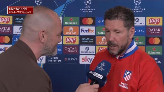 在欧冠四分之一决赛第二回合主场对阵巴塞罗那的比赛前夕,马德里竞技主教练西蒙尼接受了意大利天空体育名记迪马济奥的采访。