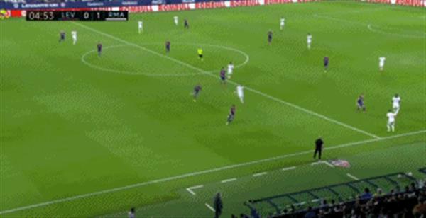 第5分钟,阿拉巴直传,本泽马反越位成功后突入禁区左边后传球,贝尔射门得分,皇马1-0!