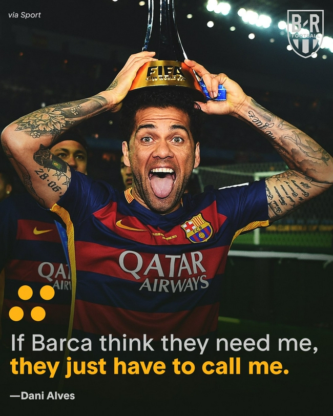 阿尔维斯表明:“假如巴萨认为他们需要我,只要给我打电话就够了,我随时听令。在世界上,我仅有有家的地方就是在巴塞罗那。”