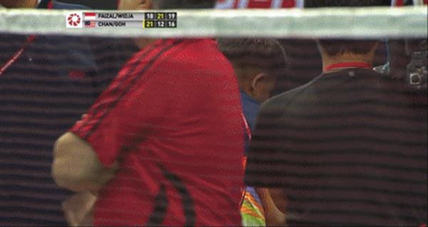 维德佳佳不小心被陈炳顺的杀球打到眼睛