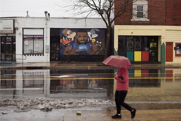 俄亥俄州阿克伦——在这个寒冷潮湿的二月下午,珀金斯公园被白雪和寂静所笼罩,这里的篮球场远近闻名,但寒冷依然让最热血的篮球爱好者望而却步。雪和水盖住了球场上裂开的水泥。篮网寂然悬挂着。