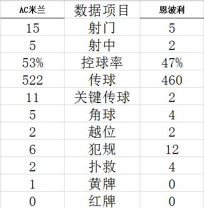 AC米兰近10战恩波利仅负1场,其余9场5胜4平。这是双方第28场意甲交锋,此前AC米兰16胜8平3负,其间主场9胜1平3负。仅有弗洛伦齐轮换出场。