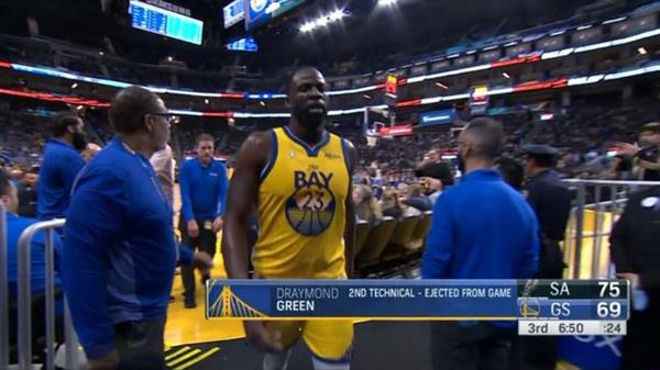 回过头来的进攻勇士形成犯规,追梦还在对Marat Kogut说话,在追梦说了一句“不!那很糟糕!(No!That's terrible!)”之后,Marat Kogut再给了追梦一个技犯把他驱赶!